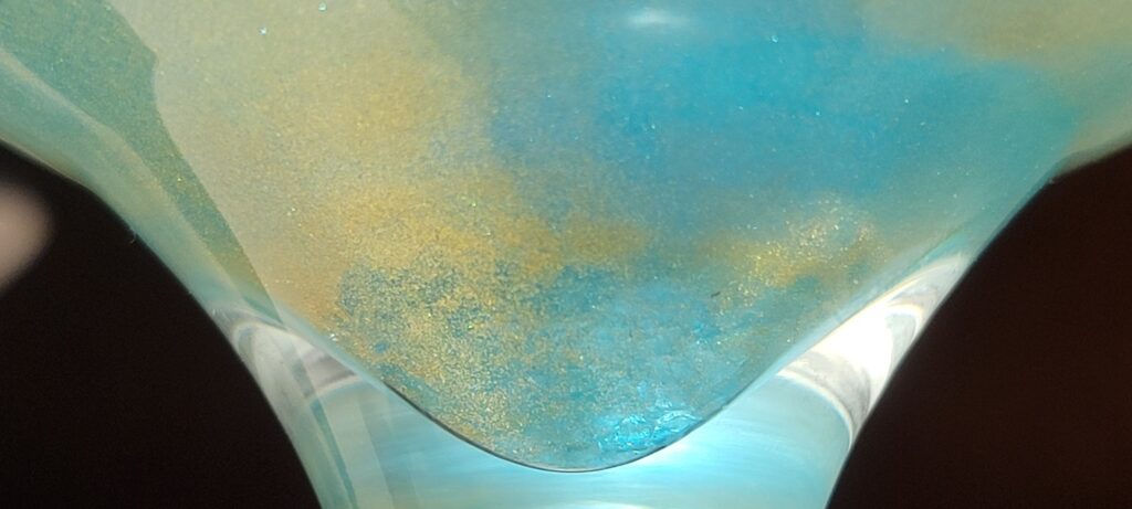 4. Watch the whole mess dissolve into a swirling vortex of gold-in-blue until it settles and looks like underwater sand.